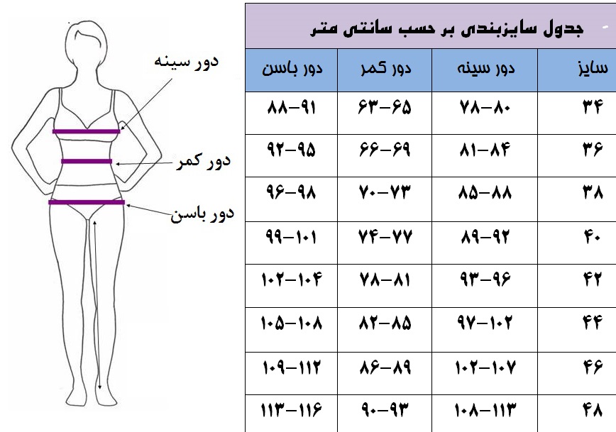 سایز 1 دور سینه 100 //// سایز 2 دور سینه 110